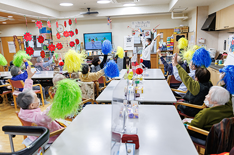 - 懐かしい歌に合わせて身体を動かします。